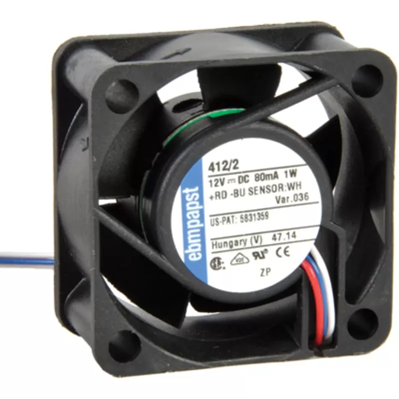 412/2-036 ebmpapst 12VDC 40x40x20mm 5.9CFM Sintec 0.9W 6000RPM 3 Wire Leads Locked Rotor Protection, Speed Sensor (Tach) Tubeaxial DC Fan