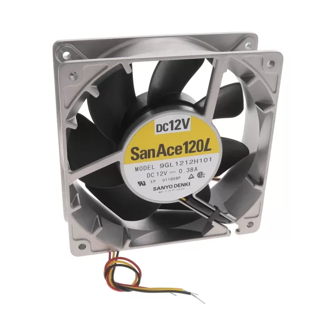 9GL1212H101 Sanyo Denki San Ace 120L DC 12VDC 119x119x38mm 99CFM Ball 39dB(A) 4.56W 2600RPM 3 Wire Leads Speed Sensor (Tach) Tubeaxial fan