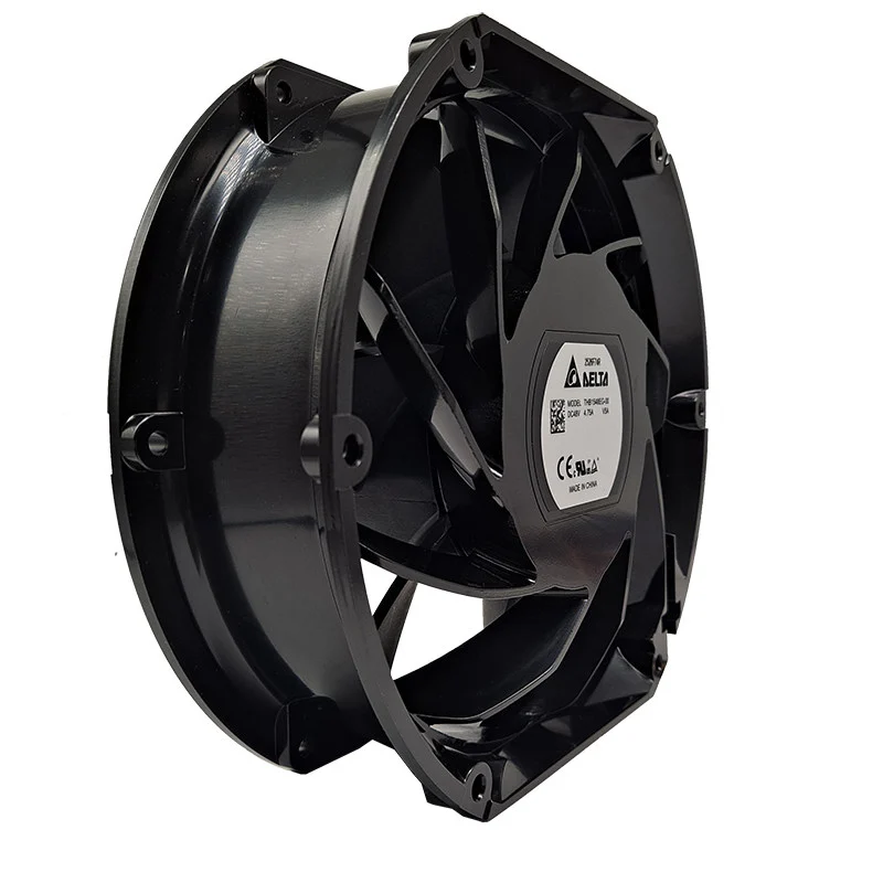 The Delta Electronics THB1548EG-00V5A ultra-high static pressure fan is specifically designed for cooling 5G telecommunications base stations, outdoor solar power inverters, EV fast-charging piles, high-wattage LED drivers, and heavy-duty industrial equipment requiring intense heat dissipation and high resistance to air pressure.